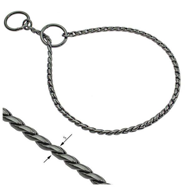 - Collar de lujo fabricado con cadena de serpiente de latón de 5 mm con anillos de acoplamiento soldados, que está destinado a exposiciones caninas.